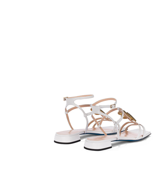 Multicolor rhinestones fuchsia nappa leather flat sandals