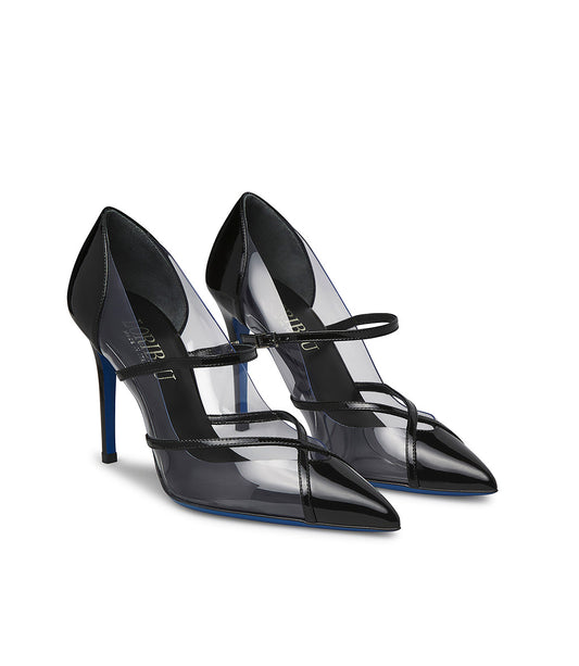 Décolleté in vernice nera e plexi