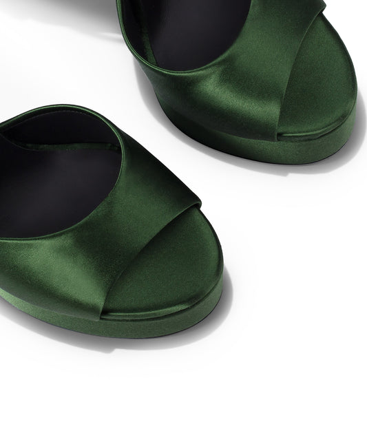 Green satin platform sandals