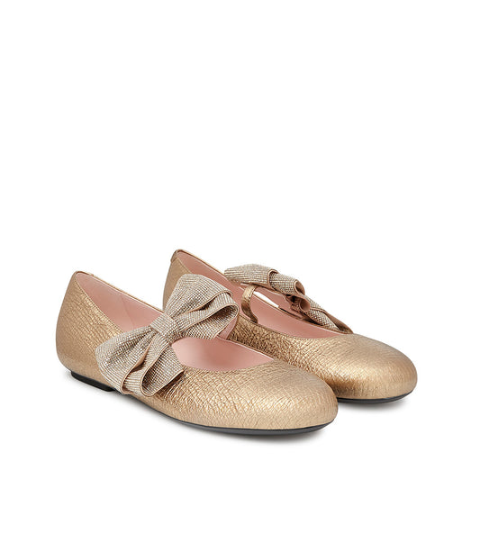 Gold leather ballerinas with bow