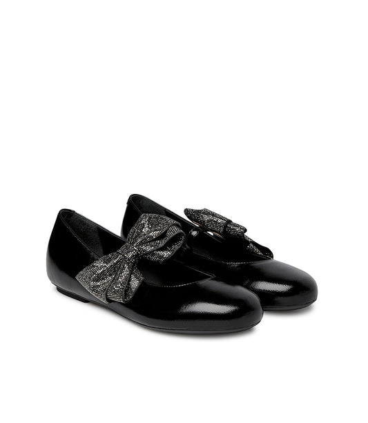 Black shiny leather ballerinas with bow