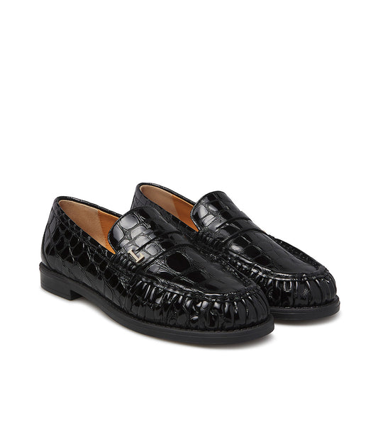 Black croc-print leather loafers