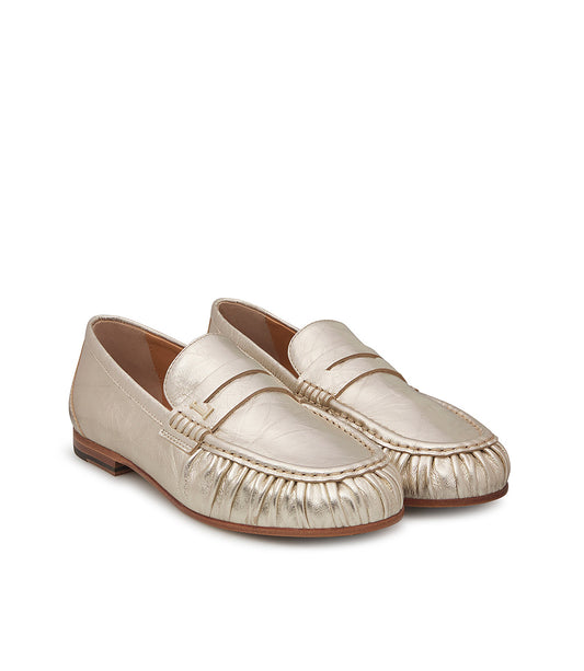 Platinum-toned nappa leather loafers