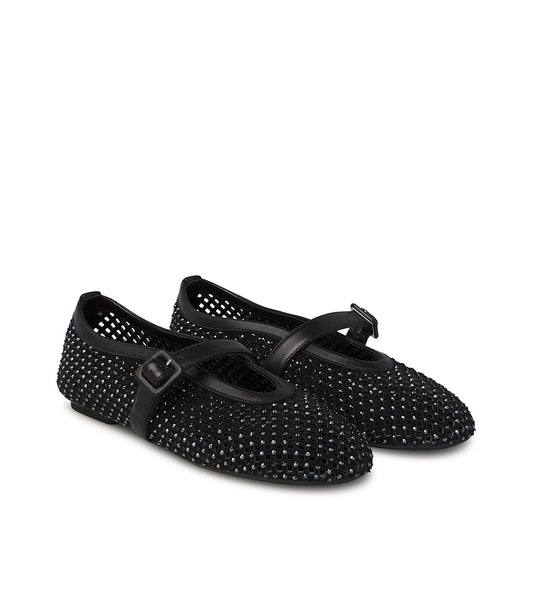 Crystals embellished black suede ballerinas