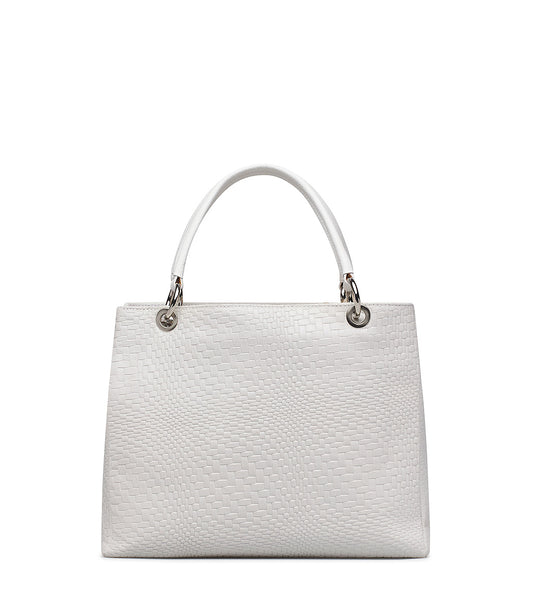 White grained leather shopping bag