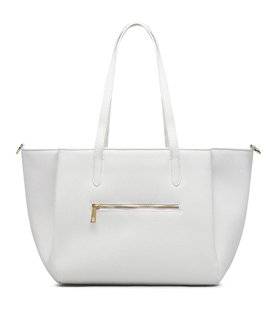 White grained leather tote handbag