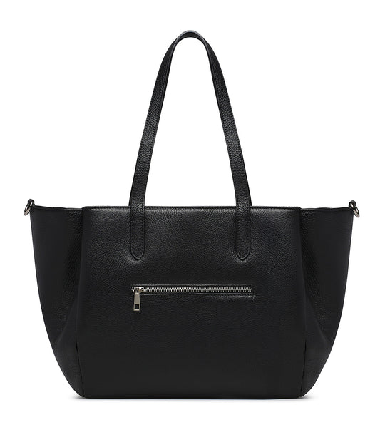 Black grained leather tote handbag
