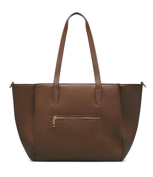 Brown grained leather shopping bag