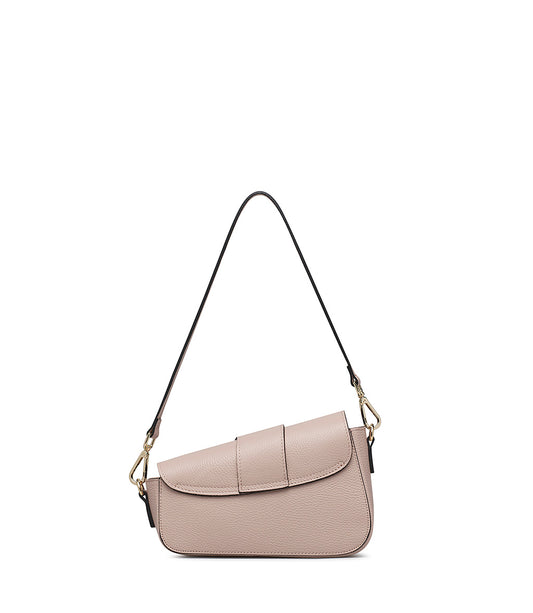 powder pink grained leather crossbody bag with maxi metal buckle