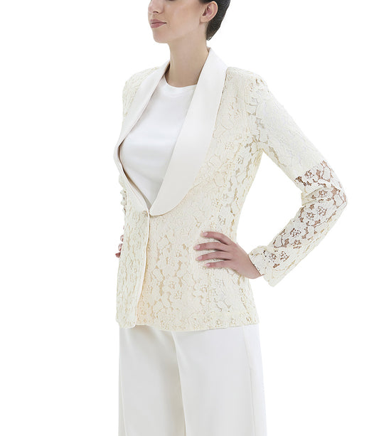 Giacca smoking in pizzo colore panna