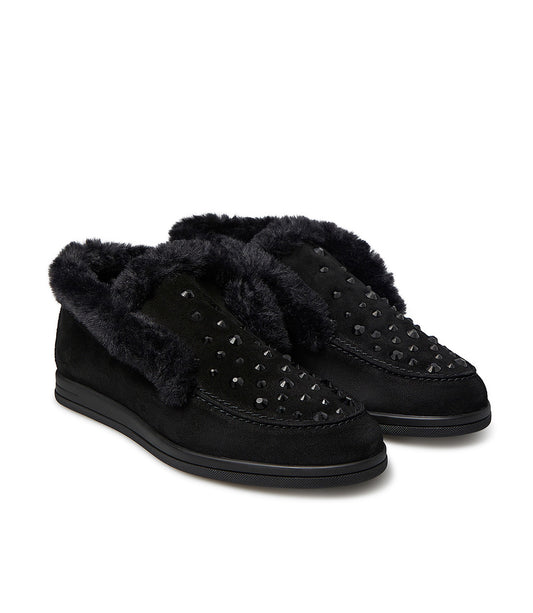 Mocassino in velluto e vitello nero con morsetto gioiello