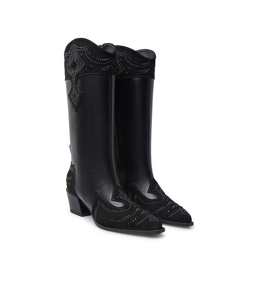 Stivaletto alla caviglia in camoscio nero con tacco in metallo oro