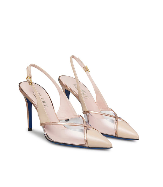 Slingback in vernice latte e plexi