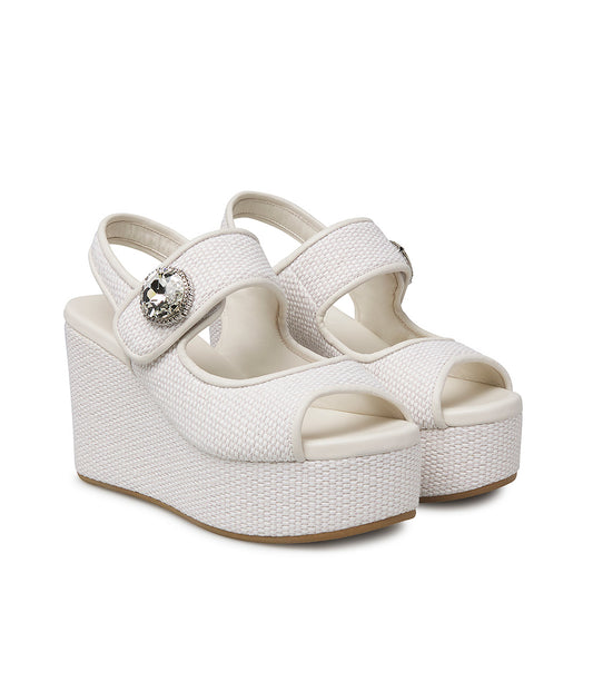 Sandalo zeppa in nappa e rafia avorio con gioiello