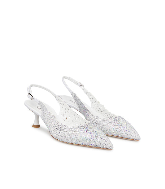 Slingback in camoscio bianco con cristalli
