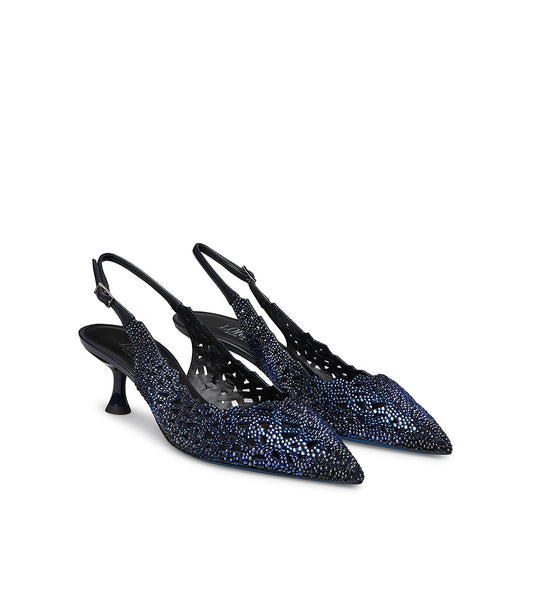 Slingback in camoscio blu con cristalli