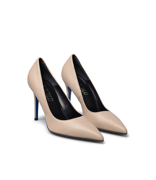 Décolleté in nappa blu con cristalli