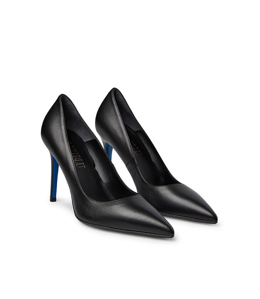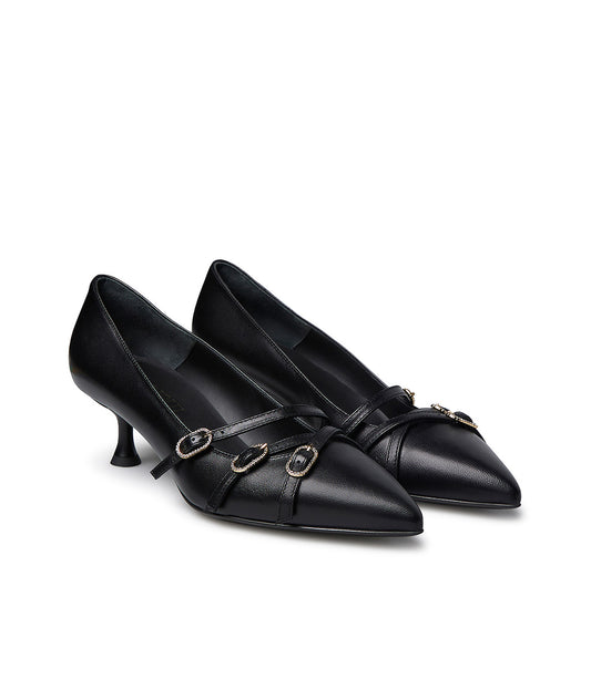 Décolleté in nappa nera con cinturini