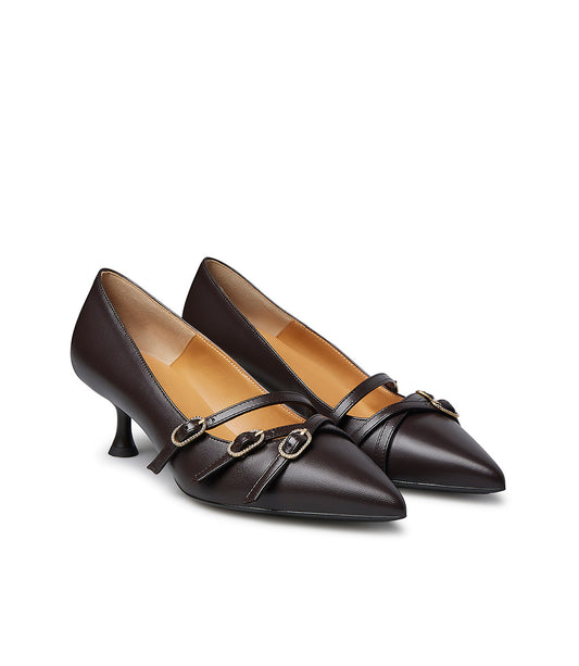 Décolleté in nappa color moro con ciunturini