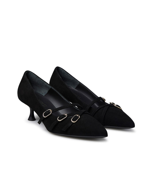 Décolleté in camoscio nero con cinturini