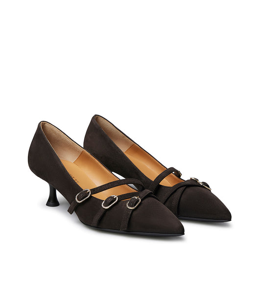 Décolleté in camoscio moro con ciunturini