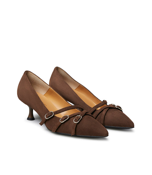 Décolleté in camoscio marrone con ciunturini
