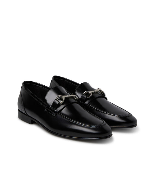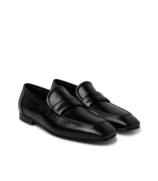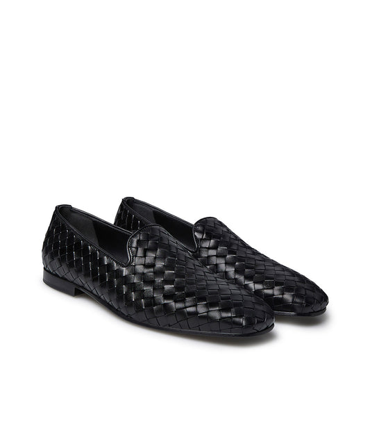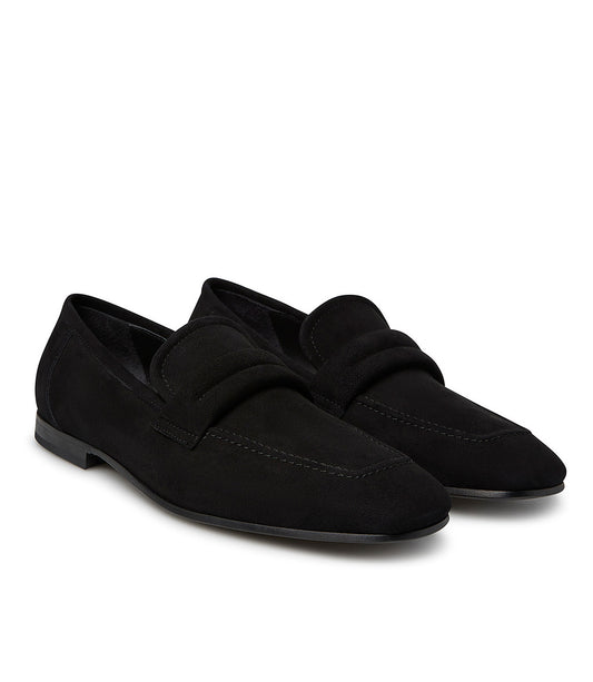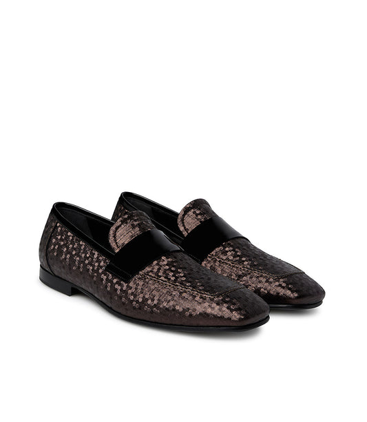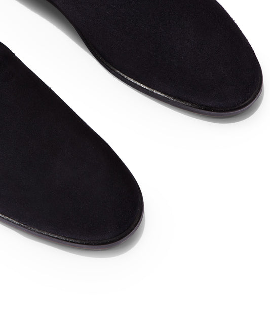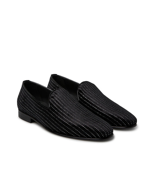 Loafer in velluto nero con micro cristalli e dettagli in vernice