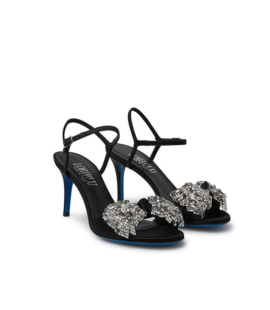 sandalo in raso nero con fiocco metal