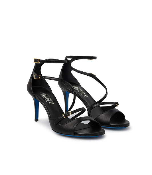 Sandalo in nappa nera con cinturini