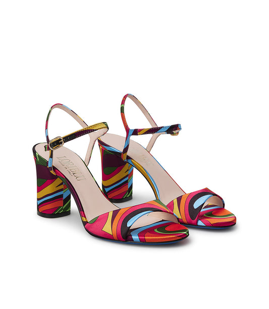 Sandali in raso stampa multicolor