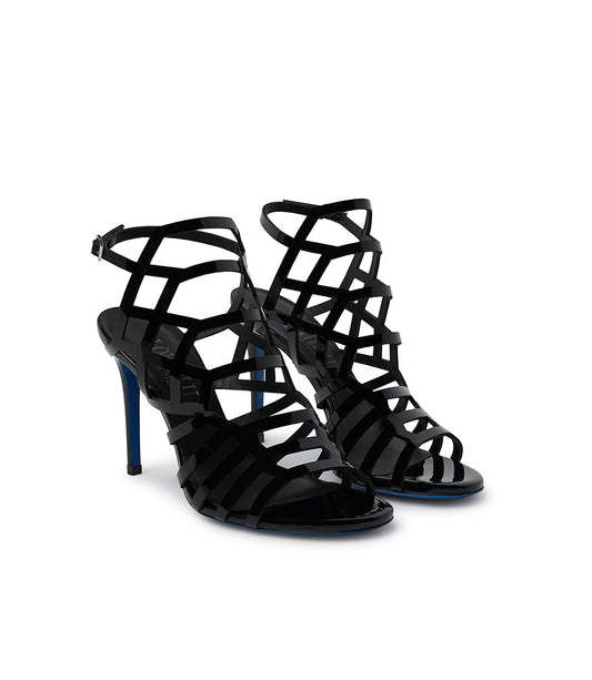 sandalo in vernice nera laser-cut