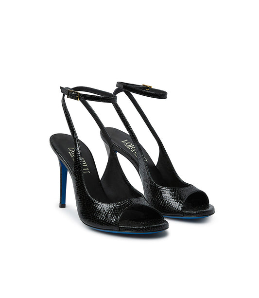 sandali in pelle nera lucida effetto snake