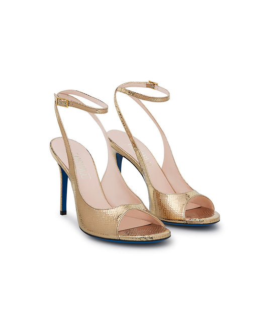 sandalo in pelle lucida oro effetto snake