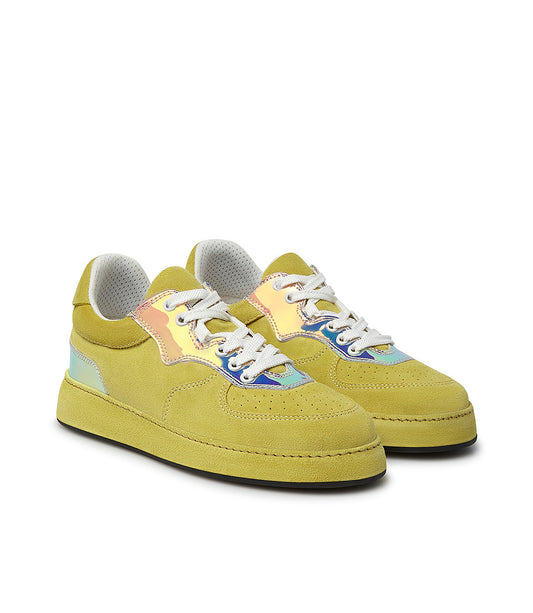 Sneakers in velour giallo e vernice multicolor