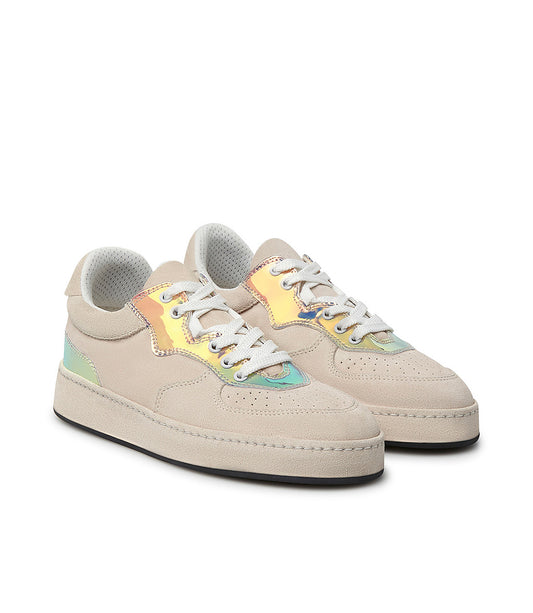 Sneakers in velour nude e vernice multicolor