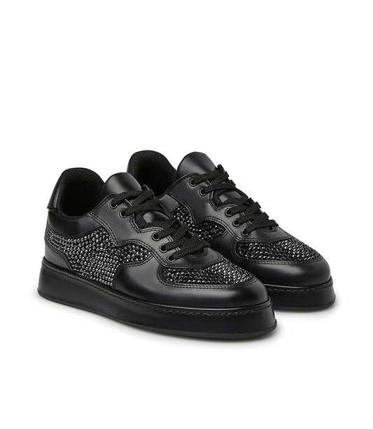 Sneakers in pelle e camoscio nero con cristalli