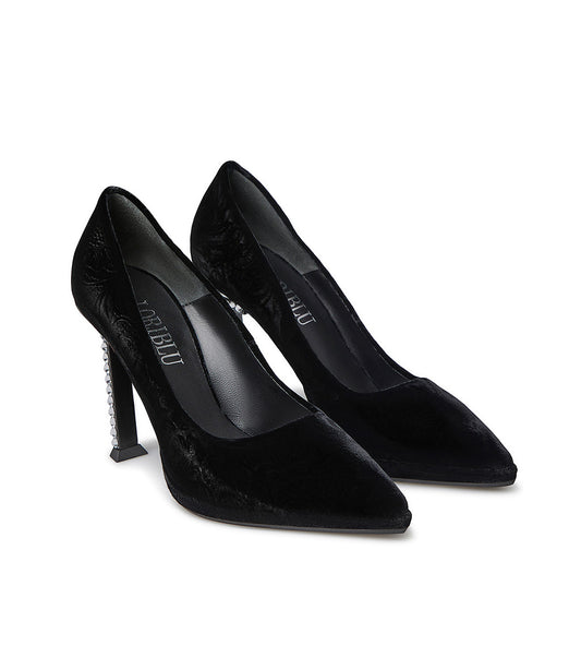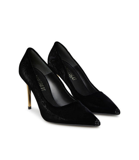 Décolleté in velluto nero con tacco L