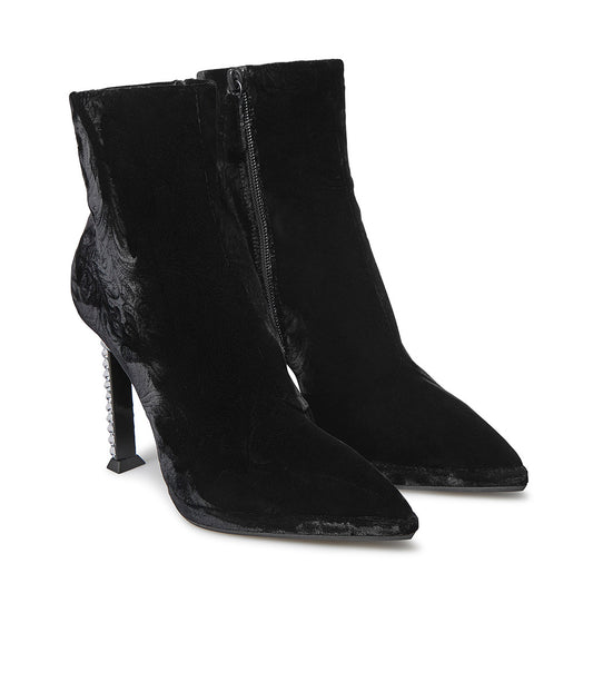 Stivaletto in velluto nero con tacco a L