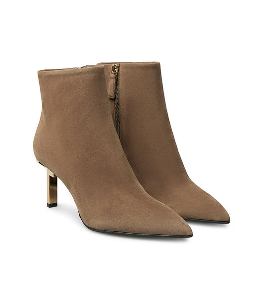 Stivaletto in camoscio visone con tacco a L