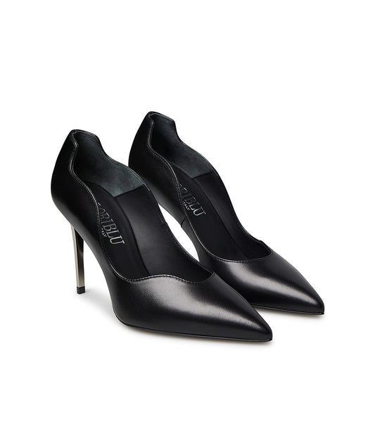 Décolleté onda in nappa nero con tacco in metallo