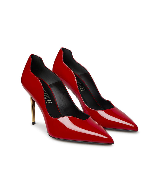 Décolleté onda in vernice rosso con tacco in metallo oro