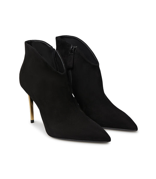 Stivaletto alla caviglia in camoscio nero con tacco in metallo oro
