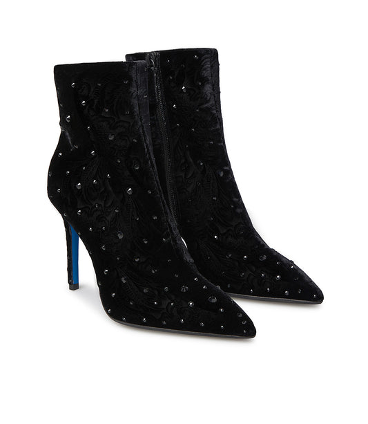 Stivaletto in velluto nero con cristalli