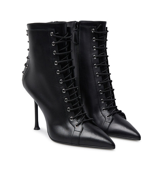 Stivaletto in vitello nero con allacciatura a corsetto