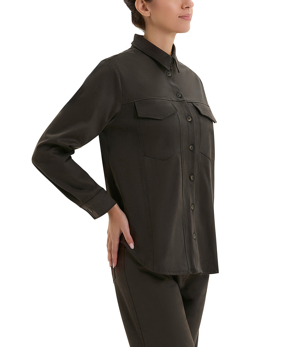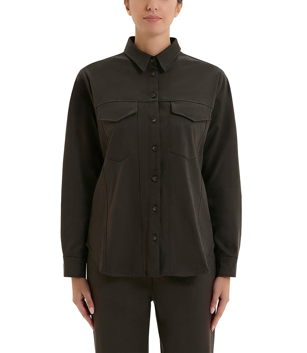 Camicia in poliestere effetto camoscio colore chocolat