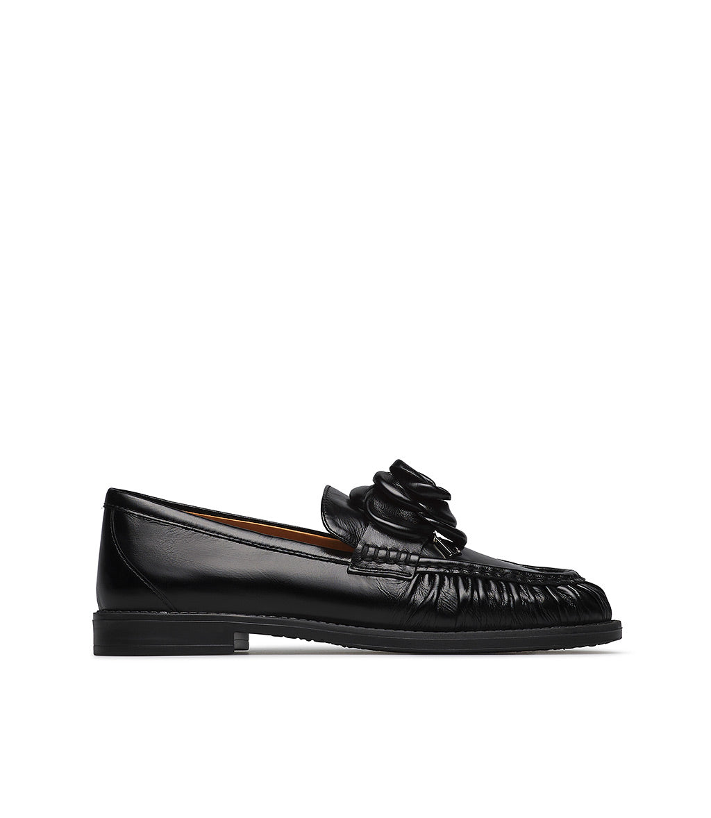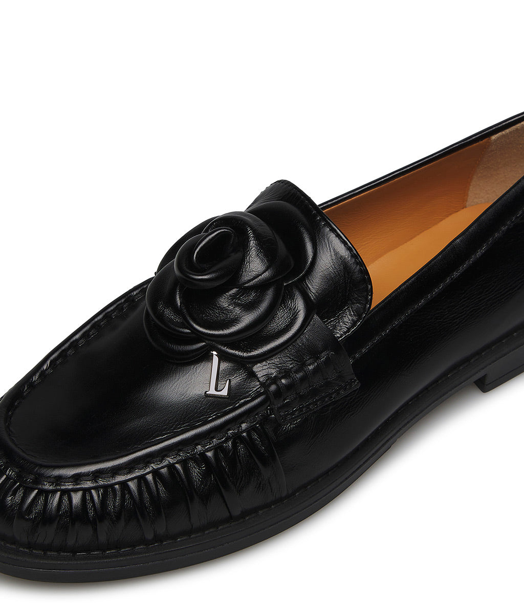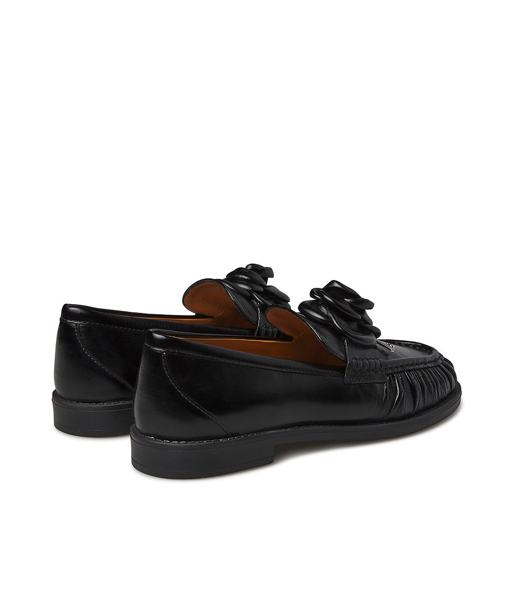 Mocassino in nappa nero con fiore