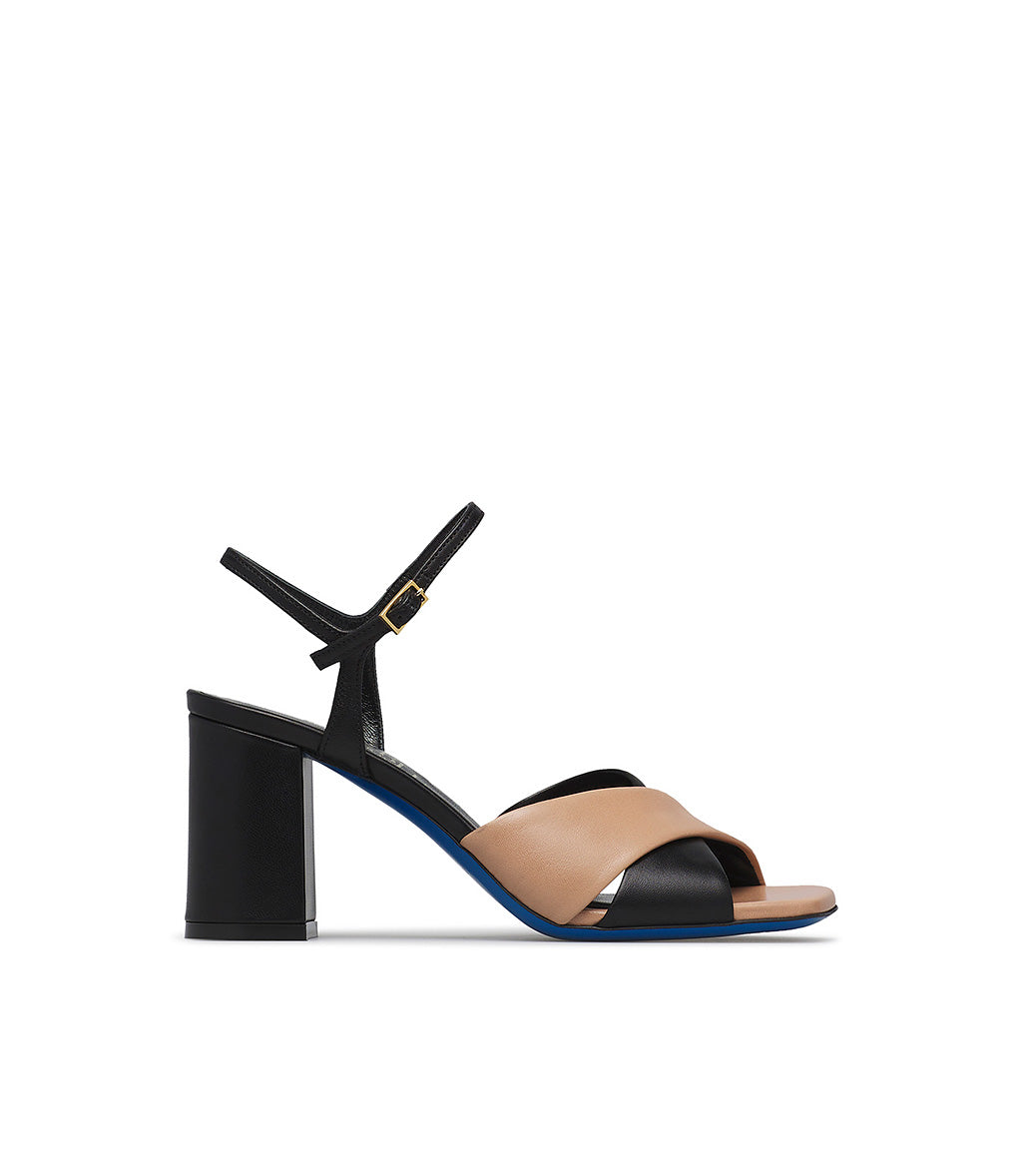 Sandalo in nappa nera e crusca