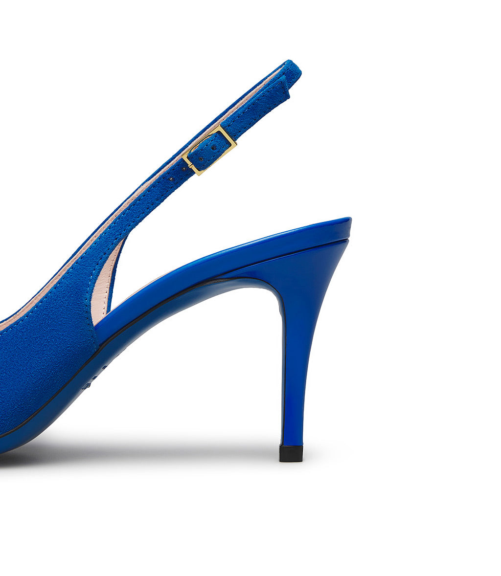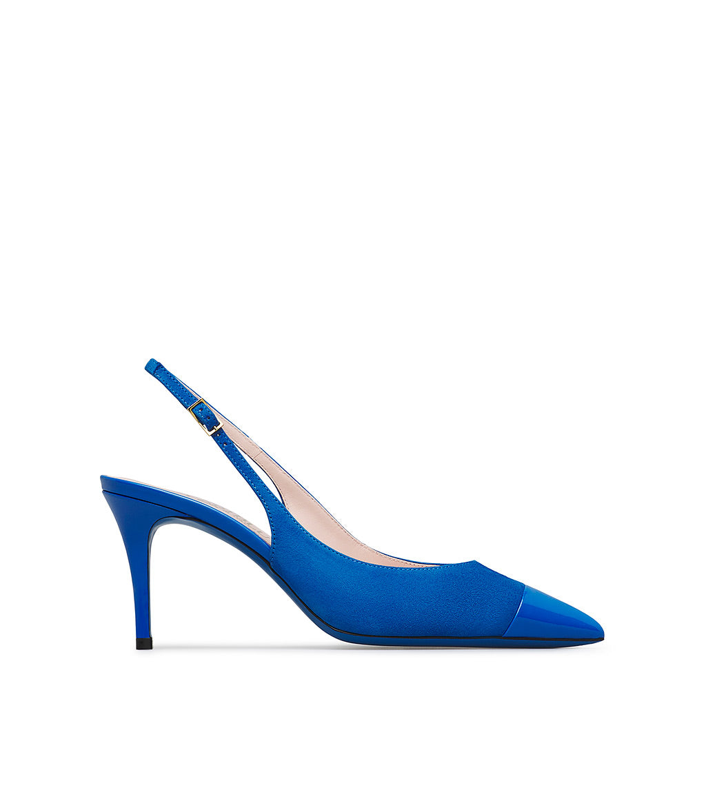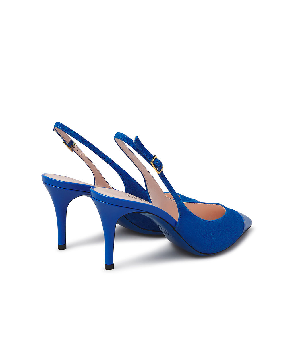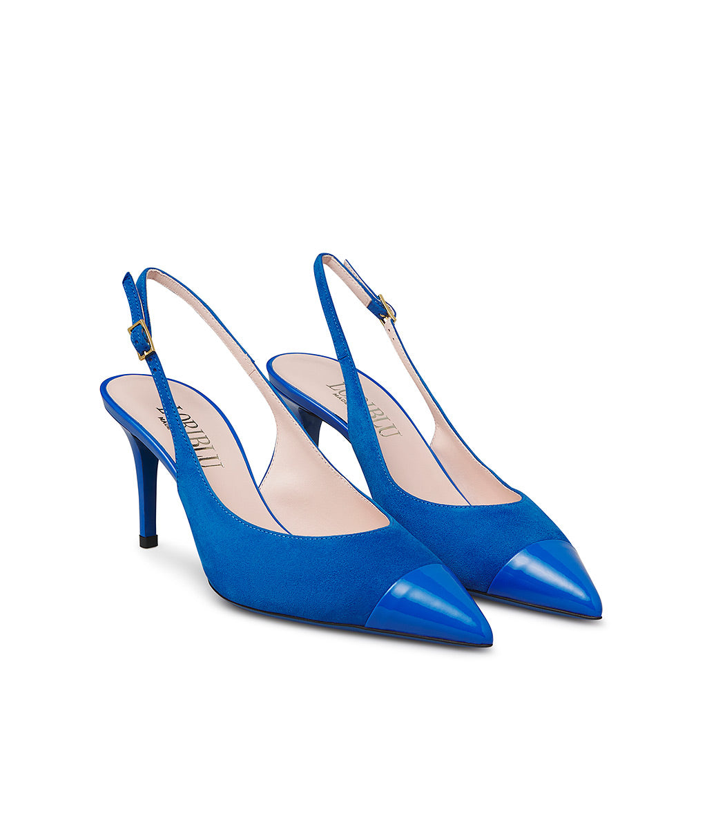Slingback in camoscio e vernice bluette