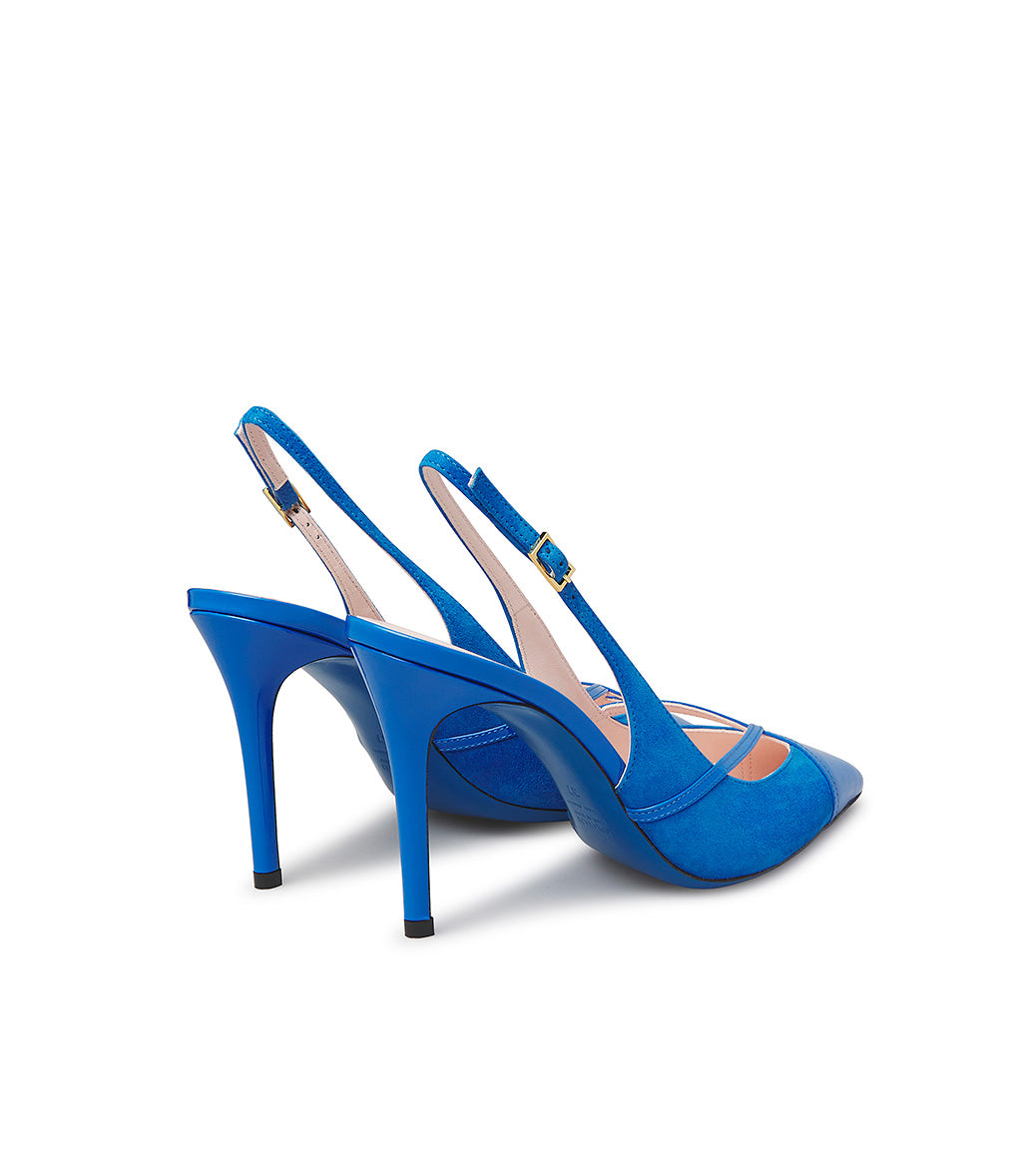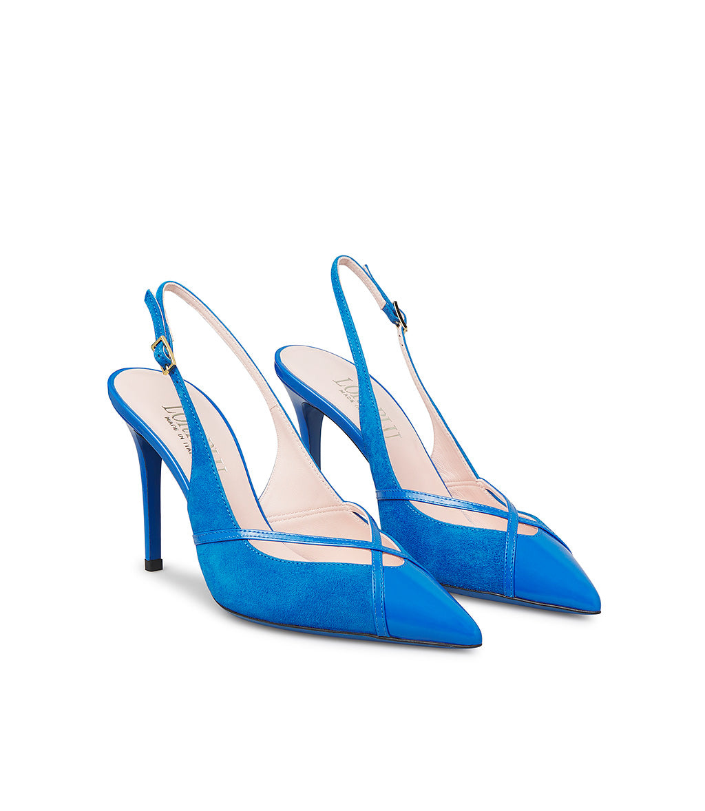 Slingback in camoscio e vernice bluette