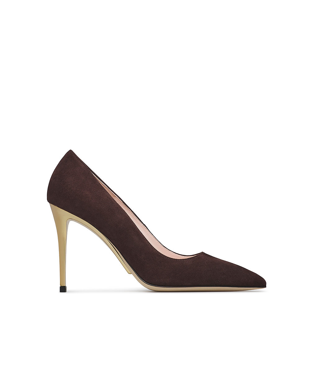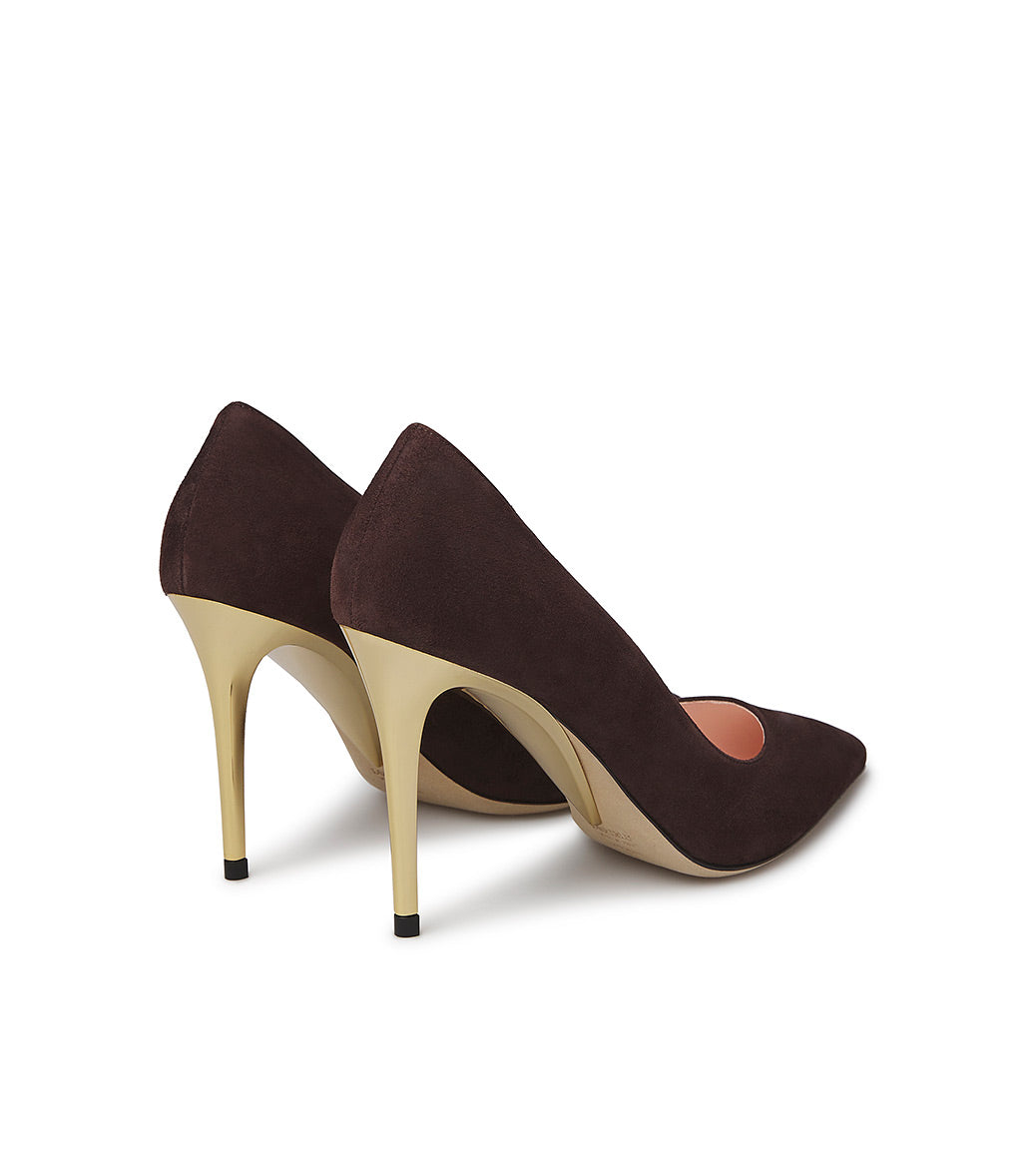 Made in Italy, our pumps are refined, feminine, and timeless. Crafted from premium brown suede, they stand out thanks to their gold-tone metal sculptural heel and refined silhouette. Featuring a pointed toe and natural leather sole, they're the perfect accessory for matching your elegant outfits.